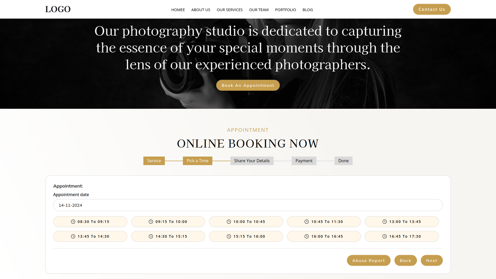 This theme goes beyond aesthetics. It fosters engagement and interaction with potential clients. Strategically placed calls to action, like Book Now buttons and contact forms, make it easy for visitors to connect with you for inquiries and schedule sessions directly through BookingGo intuitive scheduling system. Furthermore, you can showcase special packages and promotions directly within your galleries, sparking interest and driving potential clients to take the next step.